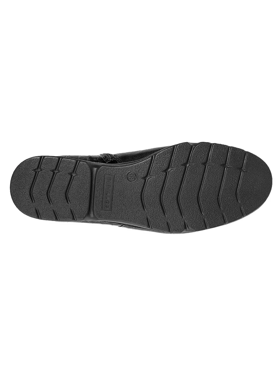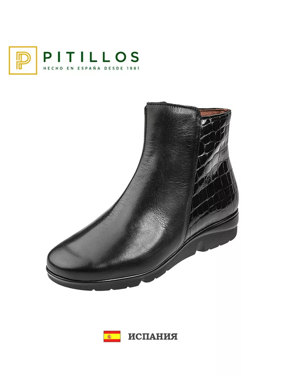 Ботинки демисезонные от испанского бренда Pitillos - незаменимая модель для повседневной носки. Ботильоны женские черного цвета из натуральной кожа имеют утепленную байковую подкладку, которая отлично сохраняет тепло. Ботинки на байке смотрятся очень стильно и гармонично, хорошо подойдут на осень/весну и на не очень холодную (европейскую) зиму.